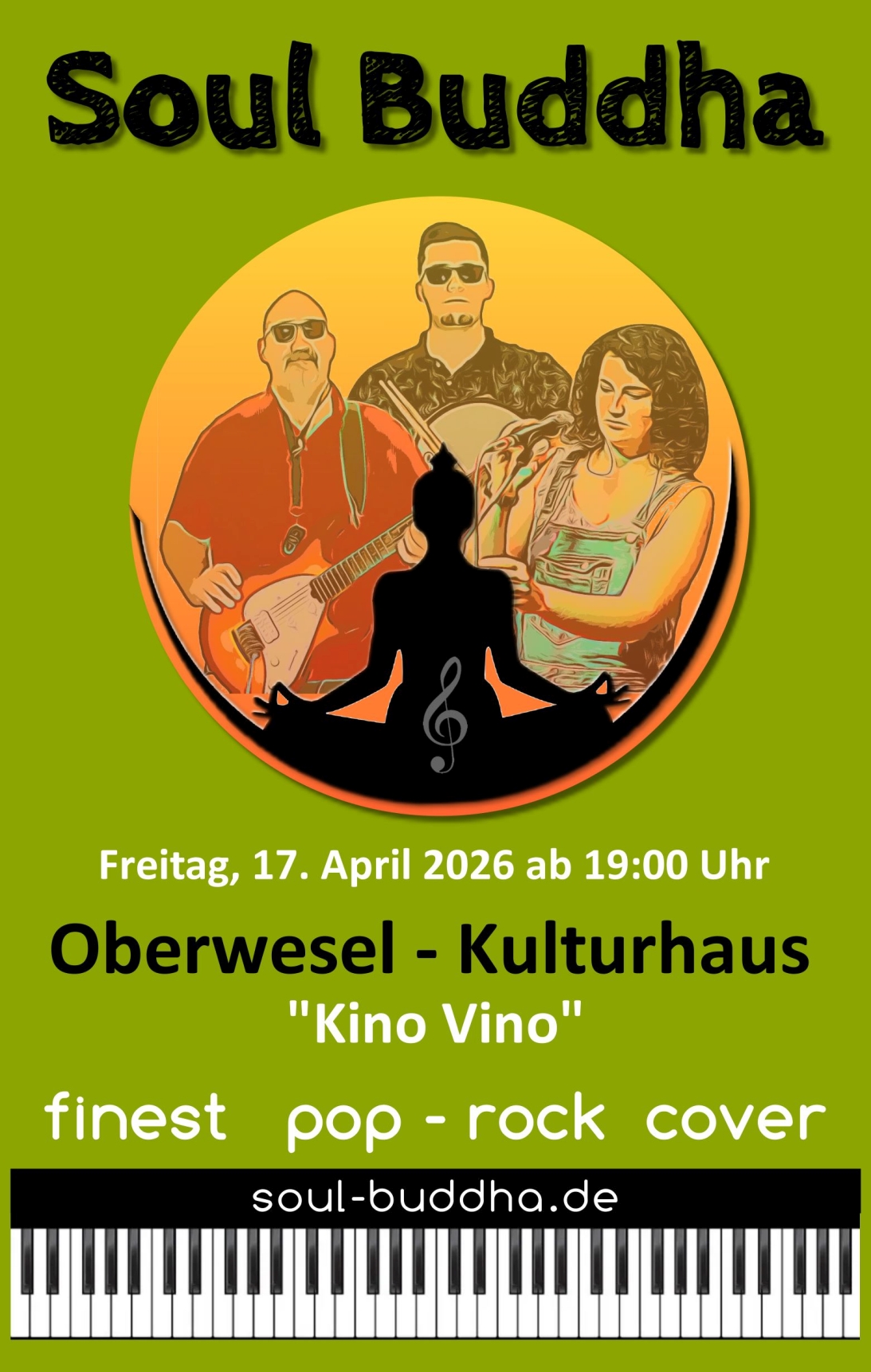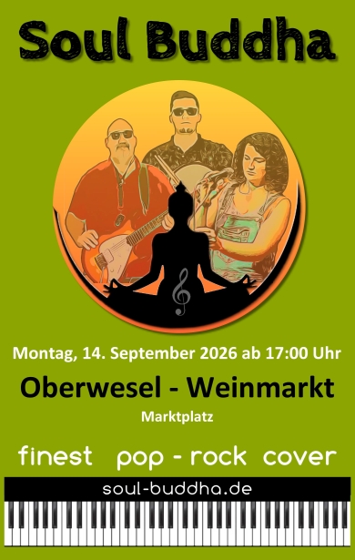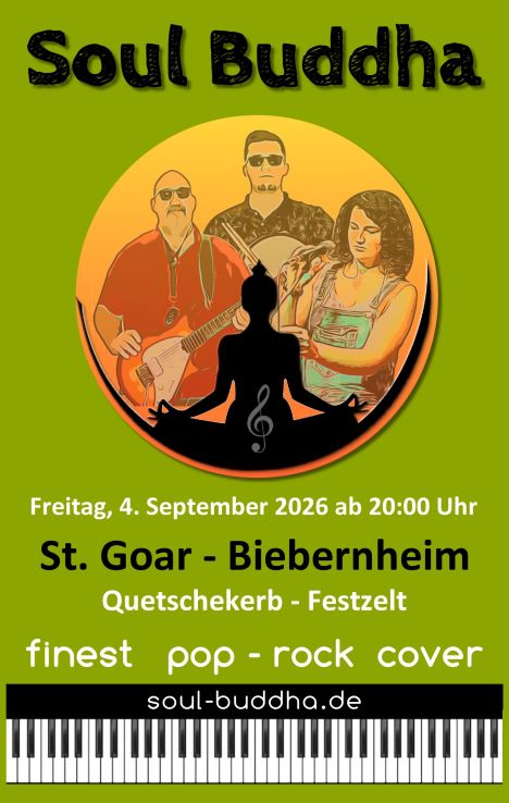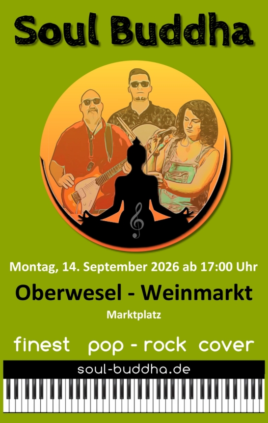 Mach das Beste zur Gewohnheit Mit einer Live-Besetzung von drei Musikern begeistern “Soul Buddha” ihr Publikum sowohl auf der kleinen, als auch der großen Bühne. Aktuelle Top 40 Hits, Rock-Classics aber auch eine Vielzahl weiterer tanzbarer Songs aller Genres gehören zum Setup der Band. Bis zu vier Jahrzehnte Erfahrung im Musikbuissenes, Perfektion bei der musikalischen Performance und der ständige Antrieb zur Erneuerung macht “Soul Buddha” weit über die Metropol Region Rhein-Main hinaus zu einer der beliebtesten Coverbands der Region.